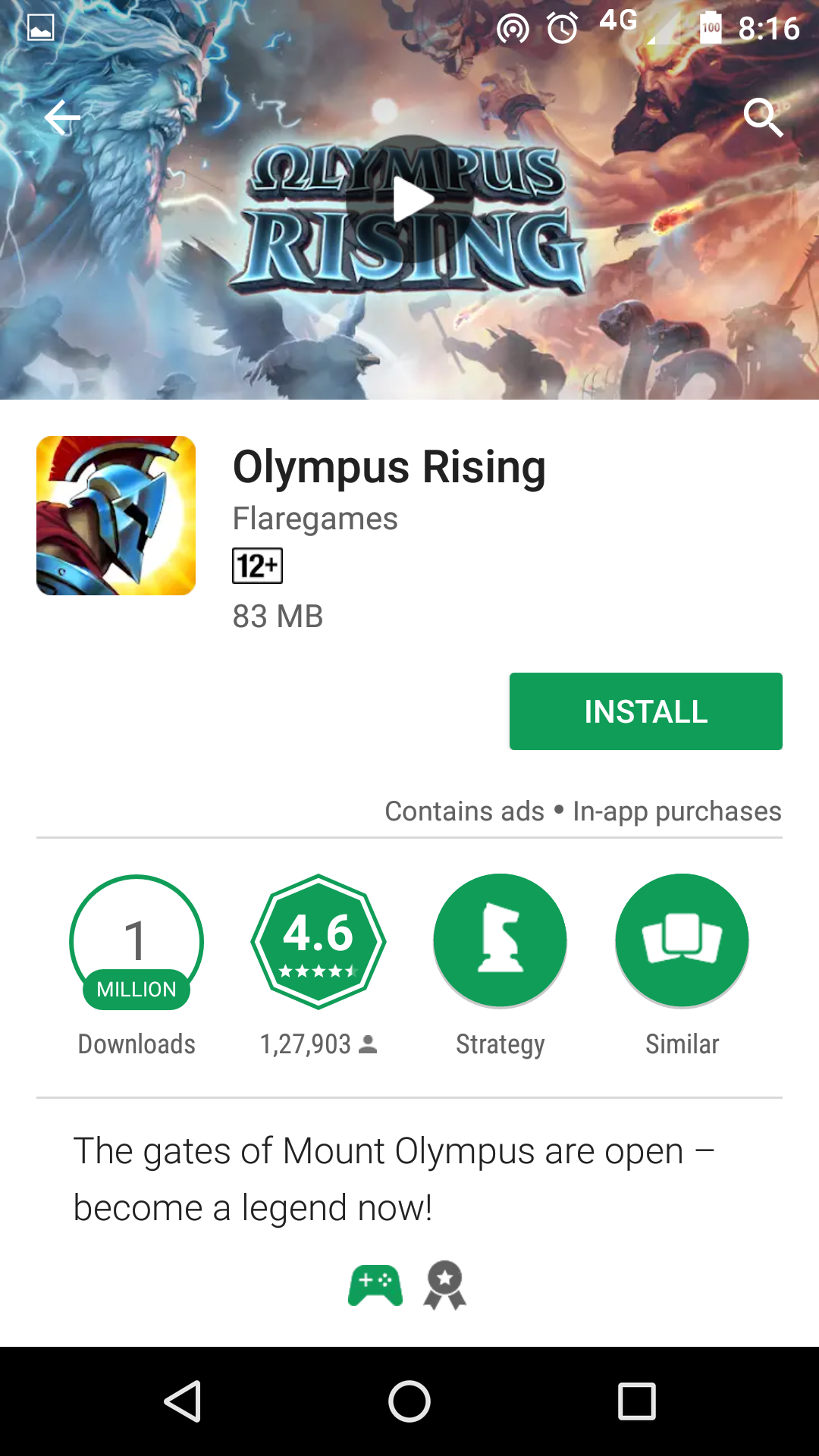 Olympus Rising: एप को 10 लाख यूजर्स ने डाउनलोड किया है। एप को प्ले स्टोर पर 4.6 स्टार मिला है, जिसे 1 लाख से ज्यादा यूजर्स ने रेटिंग दी है। एप की साइज 83 एमबी है।