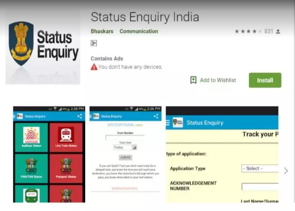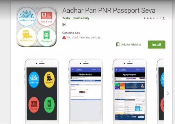 2. आधार पैन पीएनआर पासपोर्ट सेवा- इस एप को 7 वैली ने डेवलप किया है। वैसे तो यह एप आधार, पैन, रेलवे और पासपोर्ट की जानकारी एक साथ देने का दावा करता है, लेकिन बेहतर होगा कि इसे आप डाउनलोड न करें।