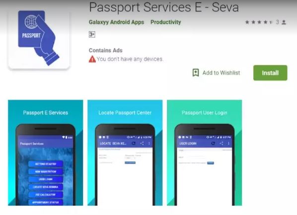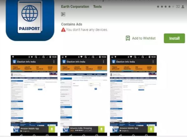 4. पासपोर्ट सर्विस ई सेवा- इस एप को गैलेक्सी ने डिजाइन किया है। यह भी एक फर्जी एप है। इस तरह के कई और फर्जी पासपोर्ट सेवा एप हैं, जिन्हें डाउनलोड करने पर फोन में वायरस का खतरा रहता है।