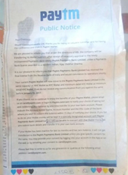 डिजीटल वॉलेट सर्विस ने हाल ही में घोषणा की थी कि वे रिजर्व बैंक ऑफ इंडिया से लाइसेंस मिलने के बाद पेमेंट्स बैंक के रूप में परिवर्तित हो जाएंगे। ऐसा होने के बाद यूजर के अकाउंट की ऑनरशिप स्वतः ही नई कंपनी पेटीएम पेमेन्ट्स बैंक लिमिटेड में स्थानांतरित हो जाएगी। हालांकि यह कस्टमर्स पर ही निर्भर होगा कि वो इसका हिस्सा बनें या नहीं।