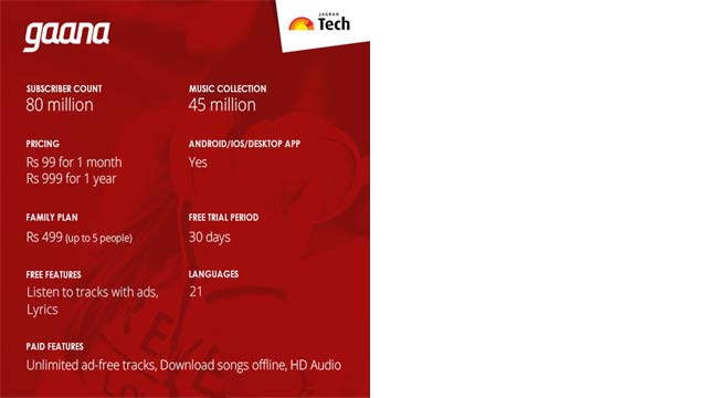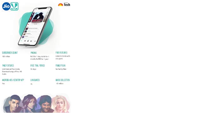 JioSaavn: इसे तीन महीने के लिए फ्री ट्रायल के तौर पर इस्तेमाल किया सकते हैं। इसमें 1 दिन के लिए 5 रुपये देने होंगे। 1 महीने के लिए 99 रुपये और 1 साल के लिए 999 रुपये देने होंगे।