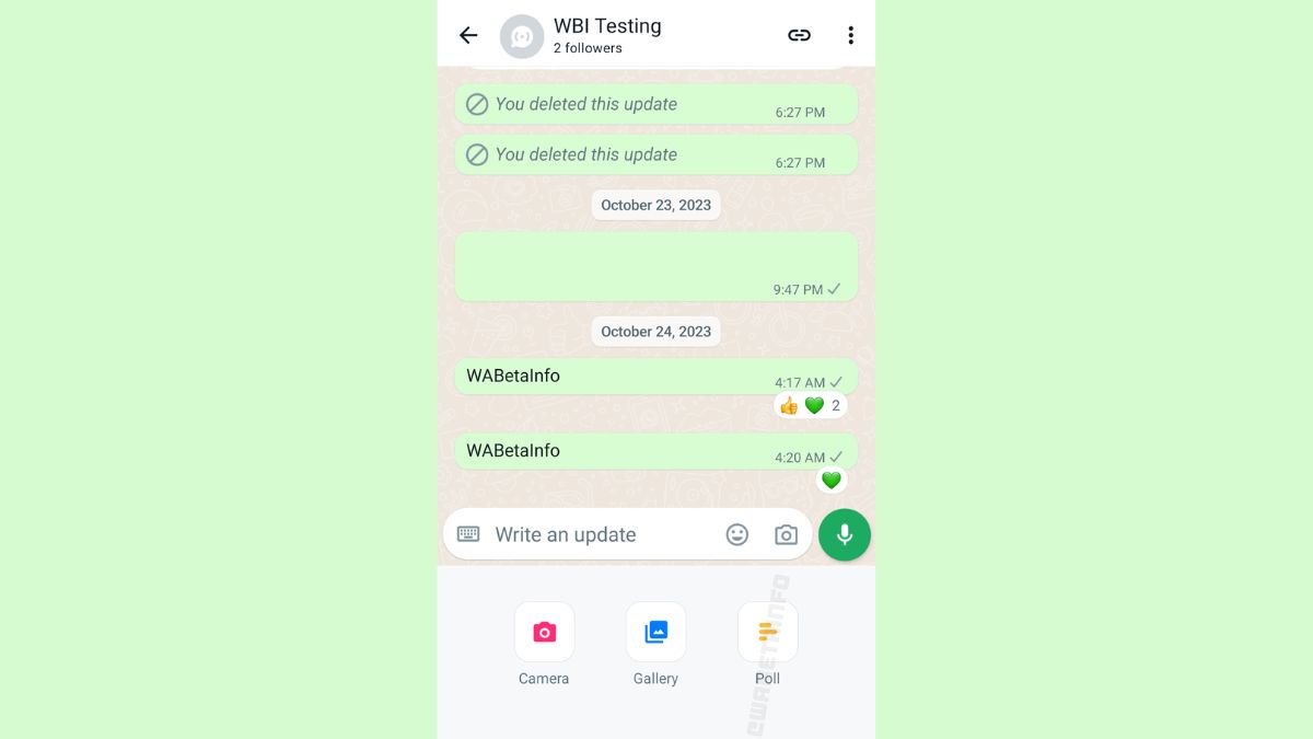 वॉट्सऐप चैनल पर अभी क्रिएटर्स को कुछ ही ऑप्शन पेश किए जाते हैं। क्रिएटर अपने चैनल में फॉलोअर्स के लिए गैलरी से पिक्चर-वीडियो को सेंड कर सकते हैं। इसके अलावा, क्रिएटर्स को पेमेंट और कैमरा का ही ऑप्शन मिलता है। हालांकि, बहुत जल्द वॉट्सऐप चैनल के साथ पोल्स क्रिएट करने के ऑप्शन को भी देखा जा सकेगा।