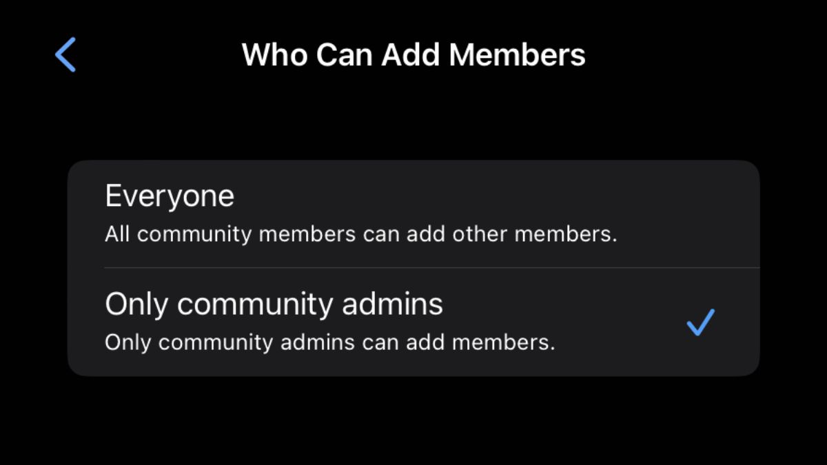 Everyone ऑप्शन को सेलेक्ट करने के साथ ग्रुप में एडमिन के अलावा, दूसरे मेंबर्स भी नए लोगों को जोड़ सकेंगे। वहीं अगर एडमिन Only community Admins को सेलेक्ट करते हैं तो एडमिन की मर्जी के बिना किसी नए मेंबर की एंट्री नहीं करवाई जा सकेगी।