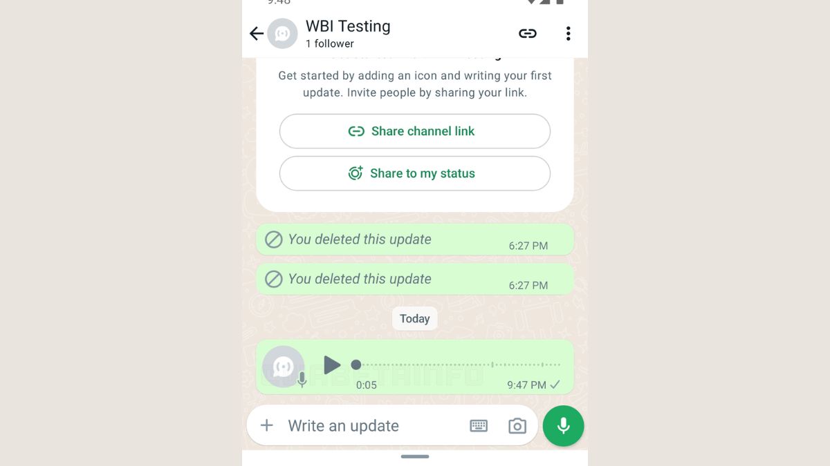 नए अपडेट के साथ चैनल क्रिएटर को अपने चैनल में वॉट्सऐप नॉर्मल चैट की तरह ही एक माइक्रोफोन आइकन नजर आएगा। इस माइक्रोफोन आइकन पर टैप करने के साथ ही क्रिएटर अपने फॉलोअर्स के लिए किसी नए मैसेज या रिप्लाई के लिए अपनी आवाज में मैसेज भेज सकेगा।