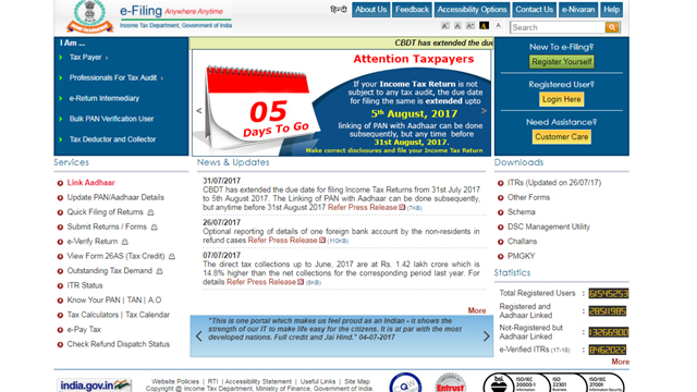 इनकम टैक्स डिपार्टमेंट की ऑफिशियल वेबसाइट: