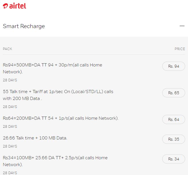 नई दिल्ली (टेक डेस्क)। भारती एयरटेल ने रिलायंस जियो एवं अन्य टेलिकॉम ऑपरेटर्स को चुनौती देने के लिए 10 नए स्मार्ट रिचार्ज प्लान्स लॉन्च किए हैं। इन प्लान्स की सबसे खास बात यह है कि इनकी वैलिडिटी कम से कम 28 दिनों की है। एयरटेल के इन प्लान्स में यूजर्स को डाटा के साथ कॉलिंग का भी लाभ मिलता है। ये प्लान देश के सभी 22 सर्किल्स के लिए उपलब्ध हैं। आइए जानते हैं एयरटेल के स्मार्ट रिचार्ज प्लान्स के बारे में