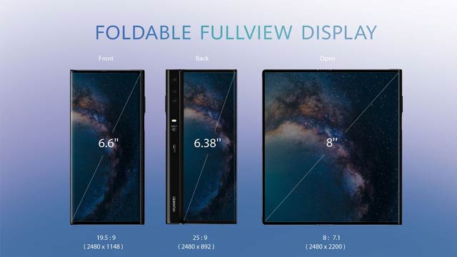 यह फोन EMUI 9.1.1 पर आधारित एंड्रॉइड 9 पाई पर काम करता है। इसमें दो फुलव्यू डिस्प्ले मौजूद हैं। इसका एक डिस्प्ले 6.6 इंच का है जिसका पिक्सल रेजोल्यूशन 1148x2480 का है। इसका आस्पेक्ट रेश्यो 19.5:9 है। दूसरा डिस्प्ले 6.38 इंच का है जिसका पिक्सल रेजोल्यूशन 892x2480 है। साथ ही आस्पेक्ट रेश्यो 25:9 है। इसके अलावा जब फोन को अनफोल्ड किया जाता है तो यहां के लिए बिना नॉच वाला 8 इंच का OLED फुलव्यू डिस्प्ले दिया गया है। इसका पिक्सल रेजोल्यूशन 2480x2200 है। इसका आस्पेक्ट रेश्यो 8:71 है।