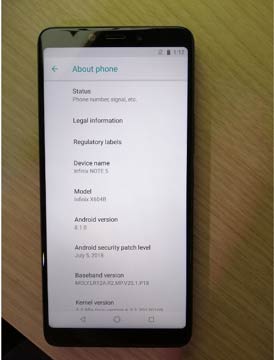 नोट 5 की स्पेसिफिकेशन्स: फोन में 5.99 इंच FHD डिस्प्ले के साथ 18:9 का आस्पेक्ट रेश्यो दिया गया है। इसका स्क्रीन टू बॉडी रेश्यो 85 प्रतिशत है। इंफीनिक्स नोट 4 की तुलना में कंपनी का नए स्मार्टफोन नोट 5 का वजन हल्का है। नोट 5 के वजन को 20 ग्राम कम कर दिया गया है। डिजाइन की बात करें तो फोन प्रीमियम ग्लास फिनिश के साथ आता है। कंपनी का दावा है की नोट 5 कॉम्पैक्ट फोन है और इसे एक हाथ से भी आसानी से चलाया जा सकता है।