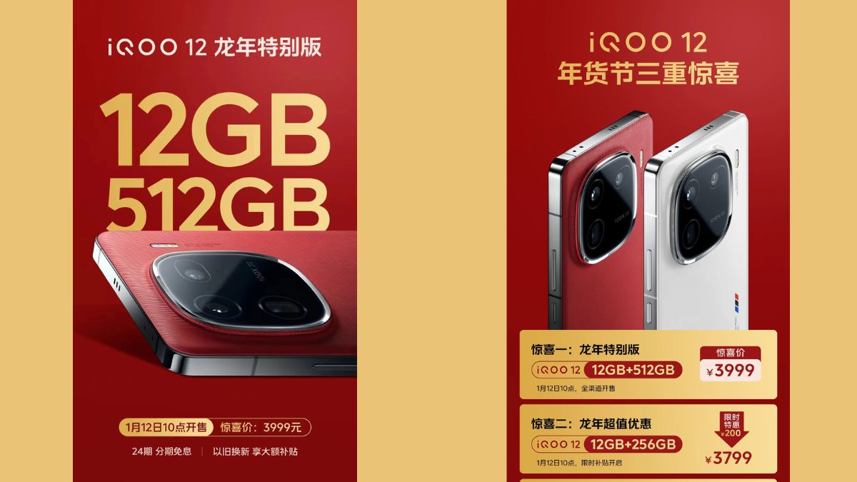 दरअसल, iQOO 12 को शुरुआती फेज में केवल तीन वेरिएंट 12GB रैम+ 256GB स्टोरेज, 16GB रैम+ 512GB स्टोरेज और 16GB रैम+ 1TB स्टोरेज में लाया गया था। iQOO 12 का Year of the Dragon वेरिएंट 12 GB रैम और 512GB स्टोरेज के साथ लाया गया है।