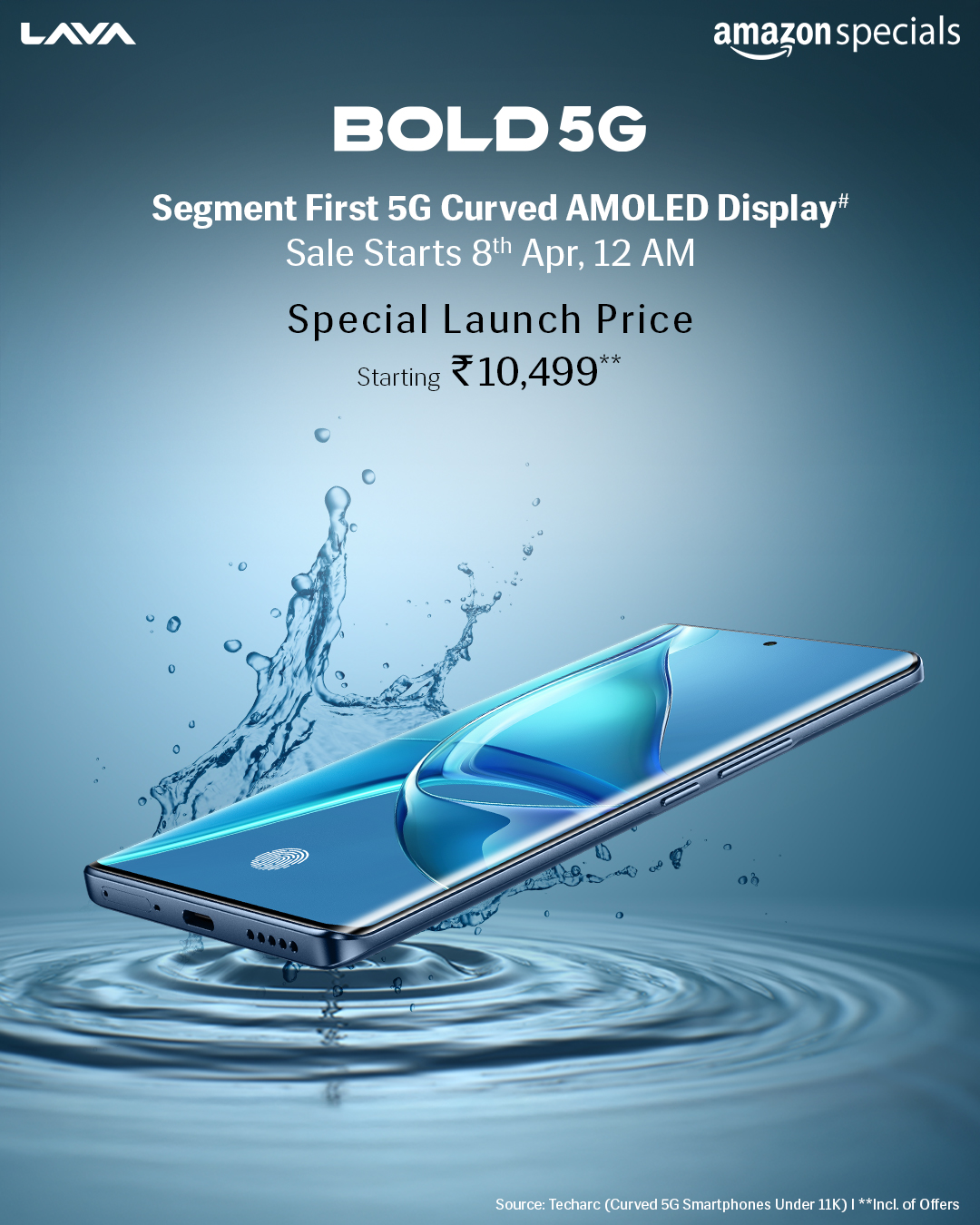 Lava Bold 5G की शुरुआती कीमत 10,499 रुपये है। ये 4GB + 128GB और 6GB + 128GB रैम और स्टोरेज कॉन्फिगरेशन्स में आएगा और सैफायर ब्लू रंग में उपलब्ध होगा। ये 8 अप्रैल को दोपहर 12 बजे IST से Amazon पर सेल के लिए आएगा।