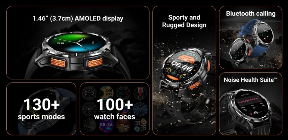 स्मार्टवॉच कई प्रोडक्टिविटी और हेल्थ मॉनिटरिंग फीचर्स के साथ आती है। यह यूजर्स को डायल-पैड से कॉल करने, रीसेंट कॉल को एक्सेस करने और नॉइज बज का उपयोग करके घड़ी पर 10 संपर्कों को सहेजने की अनुमति देता है।