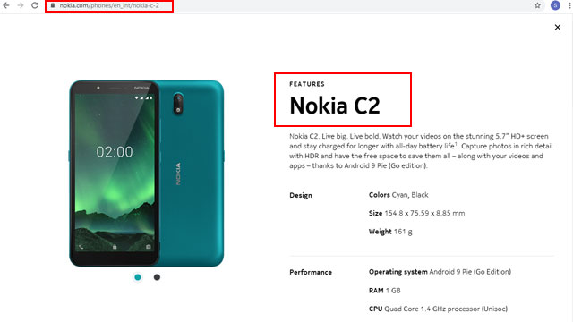 Nokia C2 के फीचर्स: इस फोन में 5.7 इंच का HD+ IPS डिस्प्ले दिया गया है। इसका आस्पेक्ट रेश्यो यह फोन एंड्रॉइड 9 पाई पर आधारित एंड्रॉइड गो पर काम करता है। यह 18:9 है। फोन 1 जीबी रैम और 16 जीबी स्टोरेज के साथ पेश किया गया है। इसकी स्टोरेज को माइक्रोएसडी कार्ड के जरिए 64 जीबी तक बढ़ाया जा सकता है। फोन में 5 मेगापिक्सल का रियर सेंसर मौजूद है। इसका अपर्चर f/2.2 है। वहीं, 5 मेगापिक्सल का सेल्फी सेंसर भी मौजूद है। दोनों ही सेंसर LED फ्लैश के साथ आते हैं। फोन से HDR मोड पर फोटोज ली जा सकेंगी।