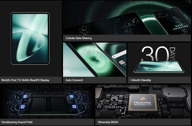 इतना ही नहीं यह टैबलेट डॉल्बी एटमॉस और वनप्लस की इन-हाउस ओमनी-बेयरिंग साउंड फील्ड टेक्नोलॉजी सपोर्ट के साथ आता है। वनप्लस पैड का क्वाड-स्पीकर सेटअप समझदारी से स्क्रीन की दिशा की पहचान कर सकता है और दाएं और बाएं ऑडियो चैनलों के बीच स्विच कर सकता है। प्रोसेसर की बात करें तो वनप्लस पैड में मीडियाटेक डाइमेंसिटी 9000 चिपसेट मिलता है, जिसमें 3.05GHz की क्लॉक स्पीड के साथ कॉर्टेक्स-X2 कोर है। ये चिपसेट 12GB तक रैम के साथ आता है।