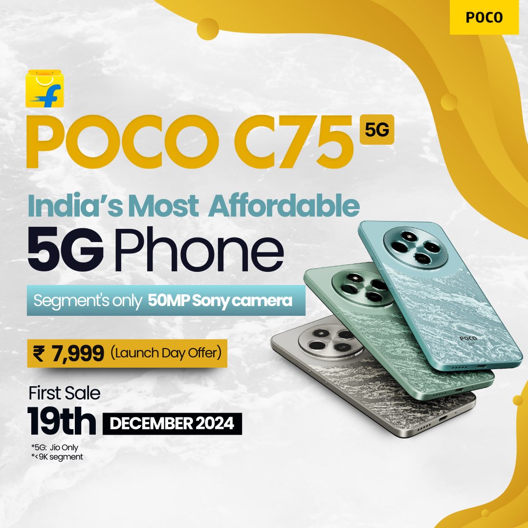 Poco M7 Pro की कीमत 6GB + 128GB वेरिएंट के लिए 13,999 रुपये है। जबकि, 8GB + 256GB वाले टॉप-एंड वेरिएंट की कीमत 15,999 रुपये रखी गई है। ये स्मार्टफोन 20 दिसंबर को दोपहर 12 बजे से फ्लिपकार्ट पर उपलब्ध होगा। Poco C75 की कीमत सिंगल 4GB + 64GB वेरिएंट के लिए 7,999 रुपये है और ये 19 दिसंबर को दोपहर 12 बजे से फ्लिपकार्ट पर उपलब्ध होगा।