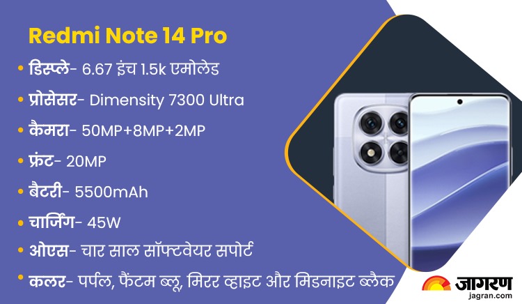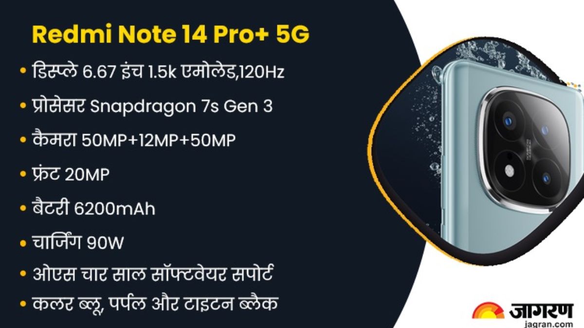 टेक्नोलॉजी डेस्क, नई दिल्ली। शाओमी ने भारत में Redmi Note 14 सीरीज लॉन्च कर दी है। इसके तहत भारत में तीन मॉडल लॉन्च किए हैं। सीरीज का सबसे महंगा फोन Redmi Note 14 Pro+ 5G है। यह तीन वेरिएंट में आया है। पहला 8GB+128GB वेरिएंट है, जिसकी कीमत 29,999 रुपये है। 8GB+256GB वेरिएंट 31,999 रुपये में लॉन्च हुआ है। वहीं, आखिरी 12GB+512GB की कीमत 34,999 रुपये है। दूसरा मॉडल Redmi Note 14 Pro है, जबकि तीसरा रेडमी नोट 14 है।