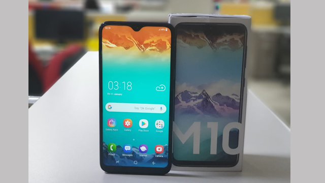 Samsung Galaxy M10 स्पेसिफिकेशन्स: इस फोन में 6.2 इंच LCD इंफिनिटी V डिस्प्ले के साथ HD+ रिजोल्यूशन दिया गया है। फोन में 19.5:9 का आस्पेक्ट रेश्यो दिया गया है। फोन में Waterdrop Notch दी गई है। M10 में 1.6 GHz Exynos 7870 चिपसेट के साथ 3GB तक की रैम दी गई है। हैंडसेट में 32GB तक की इंटरनल स्टोरेज मिलेगी। स्टोरेज को 512GB तक माइक्रोएसडी कार्ड की मदद से बढ़ाया जा सकता है। M10 में फिंगरप्रिंट सेंसर नहीं है। फोन में सिक्योरिटी के लिए सिर्फ फेस अनलॉक दिया गया है। M10 रियर पर ड्यूल कैमरा सपोर्ट के साथ आता है। इसमें 13MP का प्राइमरी और 5MP का सेकेंडरी अल्ट्रा वाइड-एंगल सेंसर दिया गया है। इसमें 5MP का फ्रंट शूटर मौजूद है। M10 में 3400mAh की बैटरी दी गई है। फोन Android 8.1 Oreo के साथ आता है।