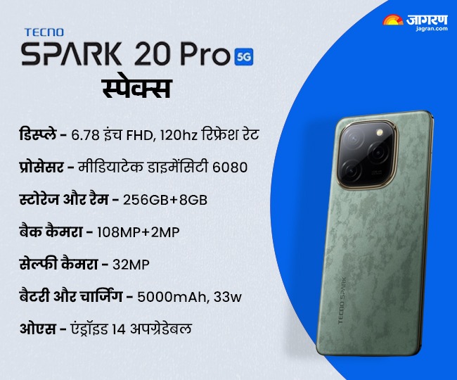 किफायती प्राइस रेंज में नया स्मार्टफोन खरीदने वालों के लिए टेक्नो भारत में एक नया फोन लेकर आया है। टेक्नो स्पार्क 20 प्रो 5G के नाम से उतारे गए डिवाइस में मीडियाटेक का प्रोसेसर लगाया है। इसमें दो स्टोरेज विकल्प मिल रहे हैं। इसे 11 जुलाई से अमेजन से खरीद पाएंगे। इस फोन के स्पेसिफिकेशन कैसे हैं और कीमत कितनी है। आइए जानते हैं।