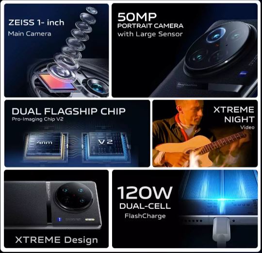 प्रोसेसर की बात करें तो दोनों फोन मीडियाटेक डायमेंसिटी 9200 प्रोसेसर हैं, जो इम्मॉर्टेलिस-G715 के साथ आते हैं। X90 सीरीज में 12GB LPDDR5 रैम और 256GB UFS 4.0 स्टोरेज है, जो आपको अपनी सभी फाइलों और ऐप्स को स्टोर करने के लिए पर्याप्त जगह देता है।