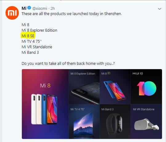 नई दिल्ली (टेक डेस्क)। चीनी स्मार्टफोन निर्माता कंपनी शाओमी ने आज एक साथ Mi8, Mi8 SE, Mi 8 Explorer Edition, Mi Band 3, Mi TV 4, Mi VR Standalone और MIUI 10 लॉन्च किया। लॉन्च होने वाले सारे प्रोडक्ट्स में Mi8 और Mi8 SE मुख्य आकर्षण का केन्द्र रहे। कंपनी के फ्लैगशिप वाली Mi8 SE कंपनी का पहला स्मार्टफोन है जिसमें स्नैपड्रैगन 710 प्रोसेसर दिया गया है। Mi8 SE का डिजाइन और नॉच बिलकुल Mi8 की तरह ही है, लेकिन कंपनी ने इसे मिड रेंज के ग्राहकों को ध्यान में रखते हुए बनाया है। यही कारण है कि इसके स्पेसिफिकेशन्स में अंतर है।