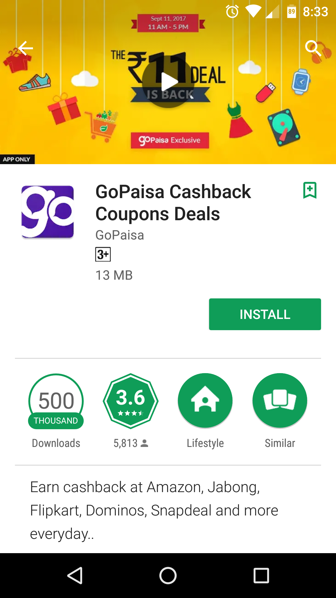 फीचर्स- GoPaisa अमेजन, फ्लिपकार्ट, स्नैपडील, जेबोंग, पेटीएम जैसे 450 प्लेटफॉर्म्स पर 100 फीसदी तक का कैशबैक ऑफर देता है। यूजर इस राशी को अपने बैंक अकाउंट में भी ट्रांसफर कर सकत हैं।
