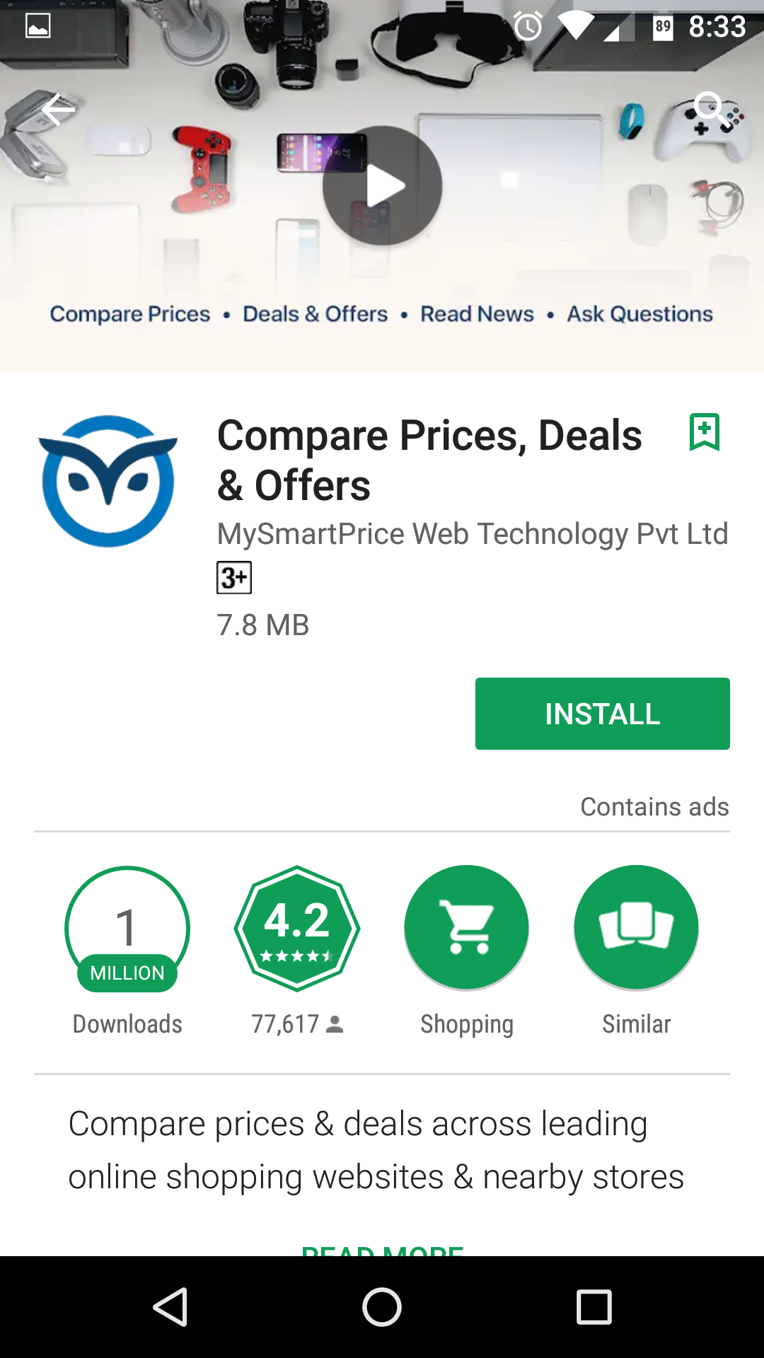 MySmartPrice: एप को 10 लाख यूजर्स ने डाउनलोड किया है। एप को प्ले स्टोर पर 4.2 स्टार मिला है। एप को 77 हजार से ज्यादा यूजर्स ने रेटिंग दी है। एप की साइज 7.8 एमबी है।