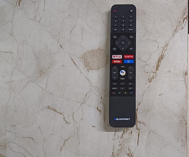 Blaupunkt स्मार्ट टीवी में एक कॉम्पैक्ट डिजाइन वाला रिमोट दिया गया है। इसमें netflix, Prime Video और Youtube बटन दिया गया है। स्मार्ट टीवी में काफी स्मूथ बटन सपोर्ट दिए गए हैं। इसमें वॉइस इनेबल रिमोट दिया गया है।