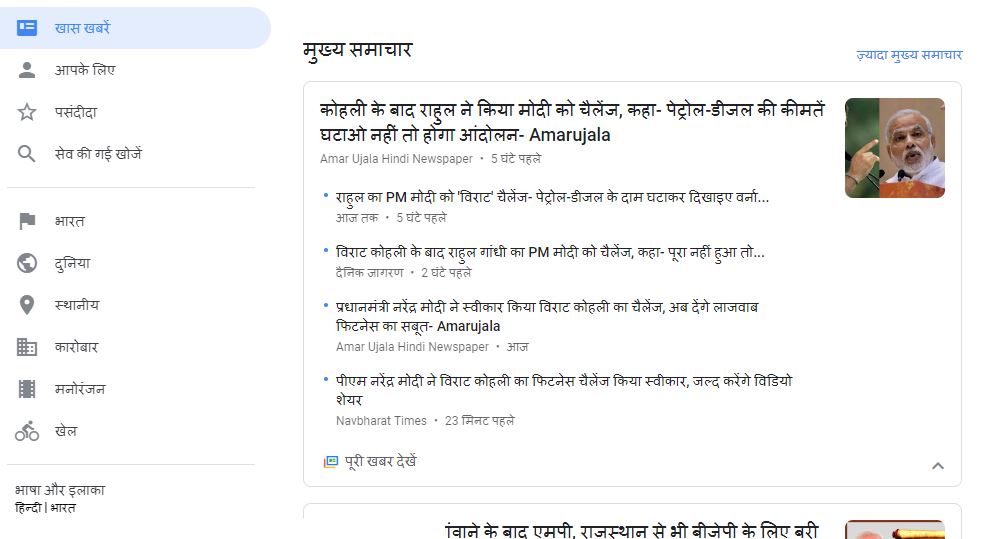 गूगल समाचार पर आप अपनी पसंद की खबरों को हिंदी में पढ़ने से लेकर उन्हें सेव और शेयर तक कर सकते हैं।