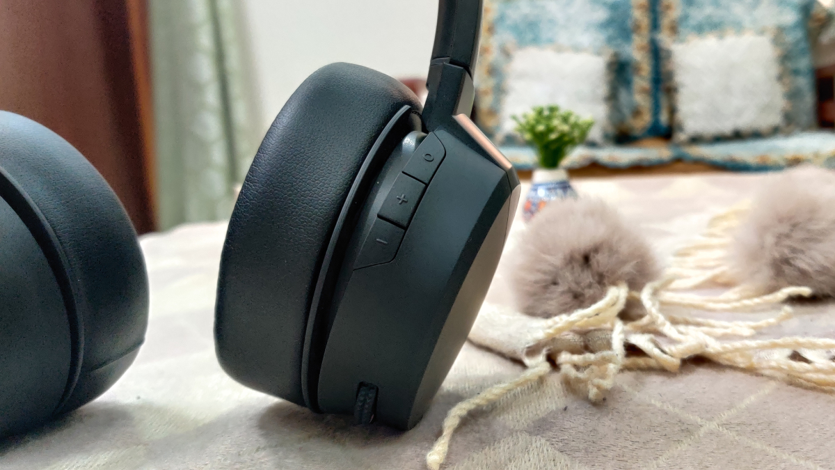 इस हेडफोन के दाईं ओर के ईयर कप में वॉल्यूम की के साथ पावर बटन दिया गया है। इसके साथ ही यहां एक रोटेटिंग डायल दिया गया है, जिससे आप इस हेडफोन के इनोवेटिव और स्पेशल फीचर्स को इनेबल कर सकते हैं। इसके साथ ही दाएं ईयर कप में ही आपको चार्जिंग के लिए Type-C पोर्ट और एक माइक कनेक्शन के लिए 2.5mm का पोर्ट मिलता है।