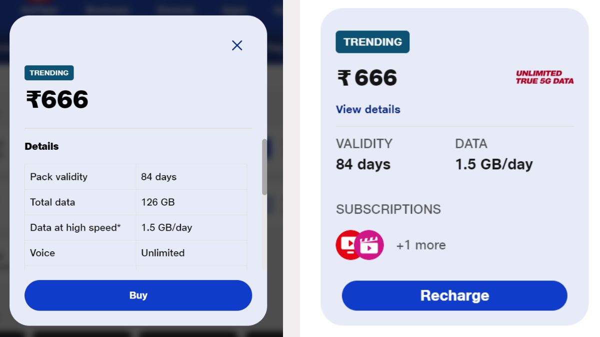 इस आर्टिकल में दोनों ही कंपनियों के सबसे सस्ते 84 दिन की वैलिडिटी वाले रिचार्ज प्लान के बीच का अंतर समझने की कोशिश कर रहे हैं-