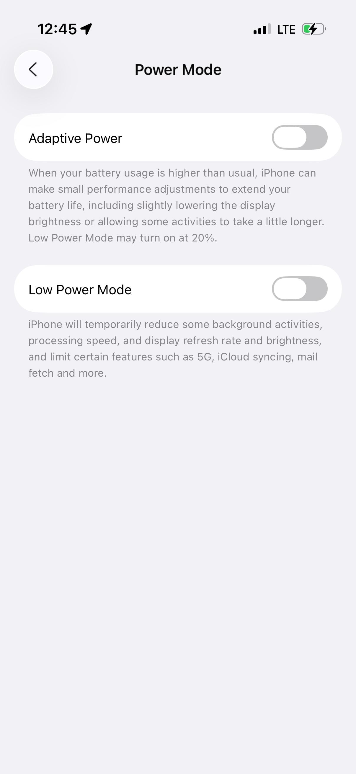 जब आप अपने डिवाइस का हैवी यूज करते हैं तो अडैप्टिव पावर मोड आपके iPhone को ज्यादा समय तक चलने में मदद करने के लिए अपने आप छोटे-छोटे परफॉर्मेंस चेंज करता है। एप्पल का कहना है कि इसमें डिस्प्ले की ब्राइटनेस को थोड़ा कम करना या कुछ कार्यों को पूरा होने में थोड़ा ज्यादा टाइम देना शामिल है। यह फीचर लो पावर मोड की लिमिटेशंस के बिना बैकग्राउंड में काम करता है, हालांकि अगर आपके डिवाइस की बैटरी 20% रह जाती है, तो लो पावर मोड अभी भी एक्टिव हो सकता है।