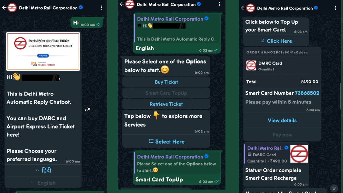 WhatsApp से मेट्रो कार्ड रिचार्ज करवाने का प्रॉसेस