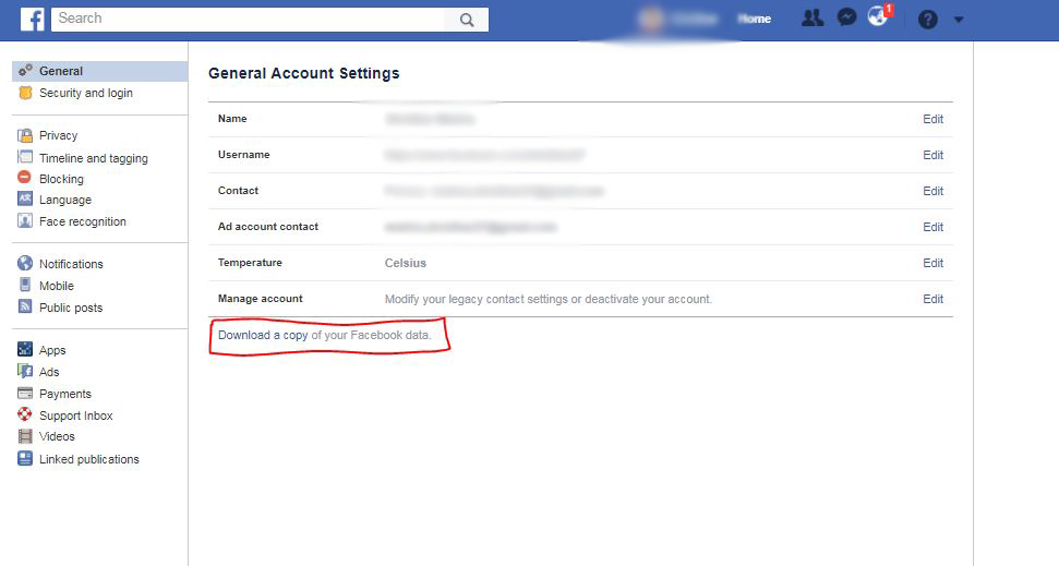 यहां आपको Download a copy of your facebook data ऑप्शन दिखेगा, इसपर क्लिक करें।