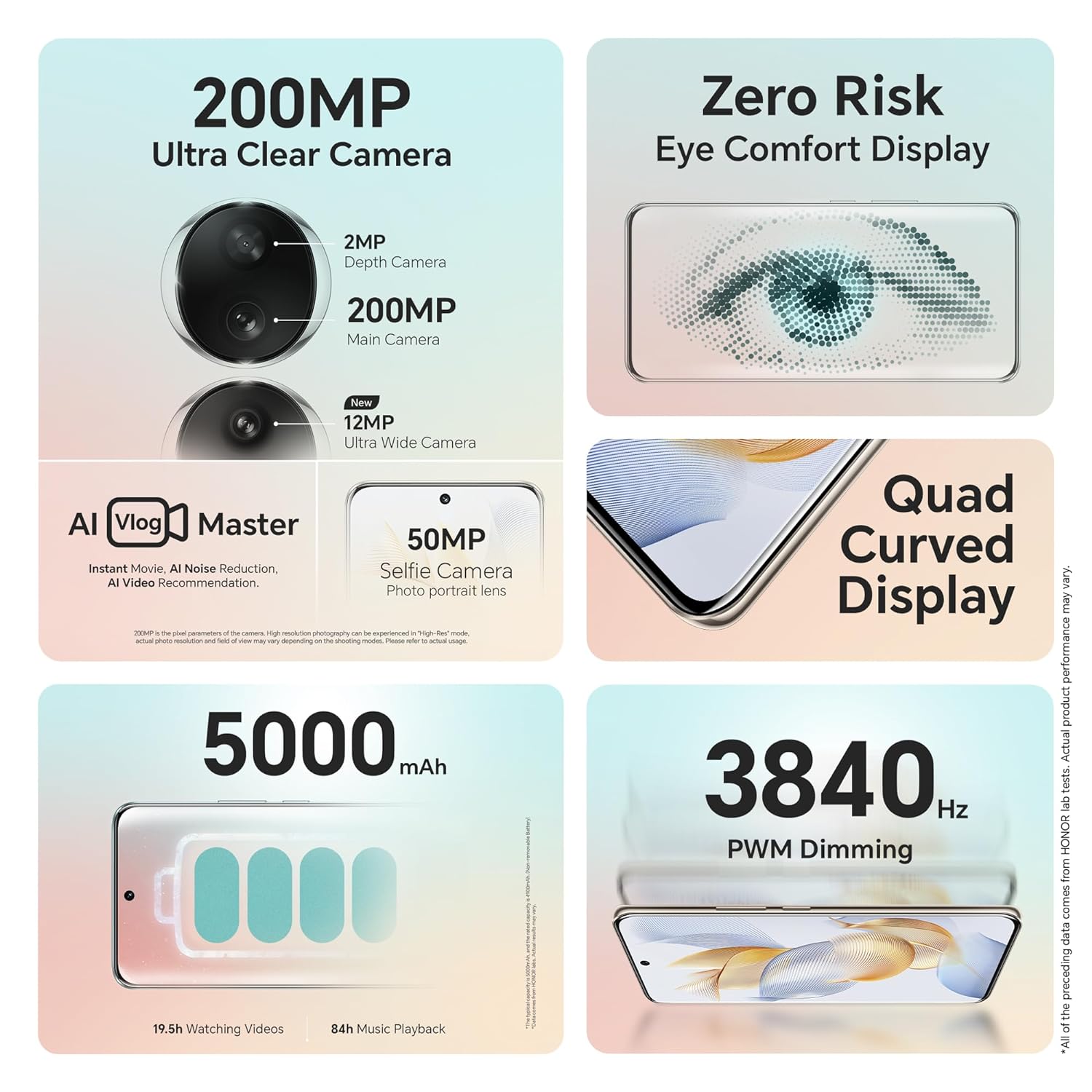 डिस्प्ले- Honor 90 5G को 6.7 इंच के Quad Curve AMOLED, 3840Hz रिस्क फ्री डिमिंग डिस्प्ले मिलता है,जिसे 120Hz रिफ्रेश रेट और 1,600nits की पीक ब्राइटनेस के साथ जोड़ा गया है।