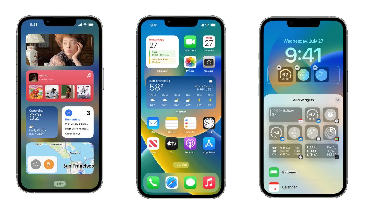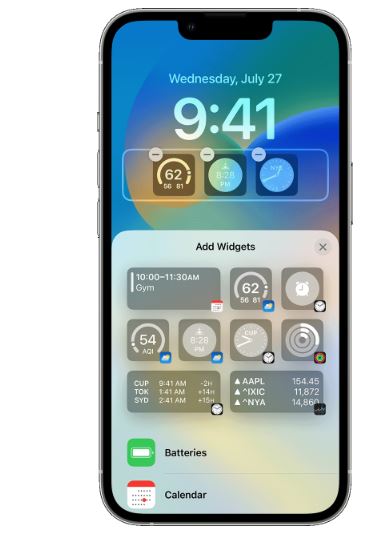 ये विजेट iPhone यूजर्स को होम और लॉक स्क्रीन पर जानकारी को जल्दी से एक्सेस करने की अनुमति देते हैं। यूजर टुडे व्यू से ज्यादा विजेट्स को एक्सेस करने के लिए होम स्क्रीन या लॉक स्क्रीन से दाईं ओर स्वाइप कर सकते हैं। iPhone लॉक स्क्रीन पर, iOS 16 दो प्रकार के विजेट आकार- सर्कुलर और रेक्टेंगुलर का विकल्प देता है। यह टाइम डिस्प्ले के नीचे स्थित होता हैं और एक इनलाइन विजेट, जो टाइम के ऊपर एक बार के रूप में दिखाई देता है।