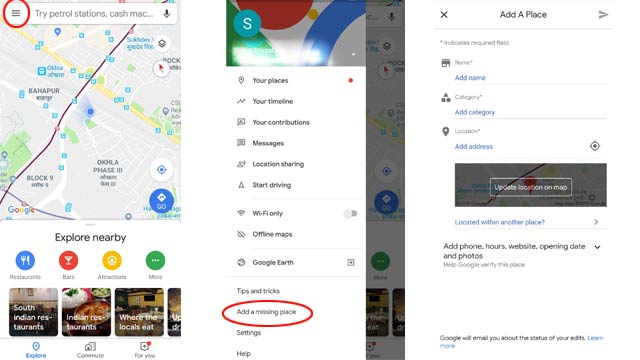 - यहां नीचे की तरफ देखेंगे Add a missing place नाम से एक ऑप्शन दिखाई देगा। जिस पर क्लिक कर देना है।