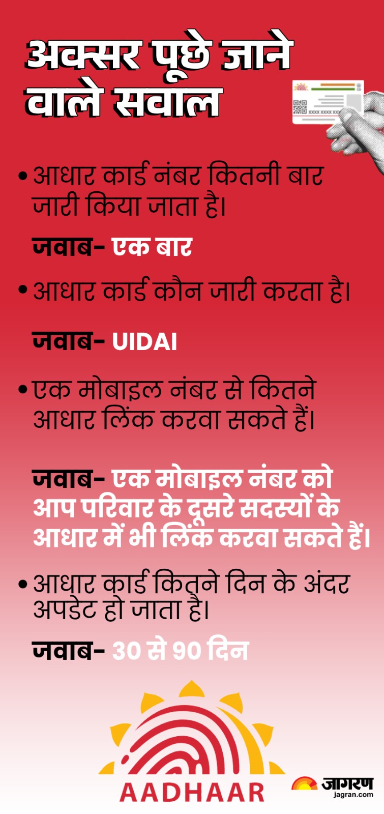 टेक्नोलॉजी डेस्क, नई दिल्ली। Aadhaar Card सरकार द्वारा जारी किया जाने वाला सबसे जरूरी डॉक्युमेंट है। किसी भी योजना का लाभ लेने के लिए सबसे पहले यही मांगा जाता है। नया सिम कार्ड खरीदने से लेकर बैंक अकाउंट खुलवाने तक में इसकी जरूरत पड़ती है। इसलिए जरूरी है कि आपके पास यह डॉक्युमेंट हो और उसमें सभी जानकारी सही से अपडेट भी हो। बहुत से लोग नहीं जानते हैं कि आधार कार्ड बनवाने का सही प्रोसेस क्या है। क्या आधार कार्ड ऑनलाइन बनवाया जा सकता है? यहां इसी के बारे में बताने वाले हैं।