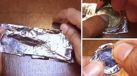 2. इसके बाद एल्युमिनियम फॉयल को 3 से 4 बार फोल्ड करें। फिर फोल्ड किए हुए फॉइल्स को आपस में फोल्ड कर लें। अब 5 रुपये का कॉइन फॉइल पर रखकर निशान लगाएं और काट लें।