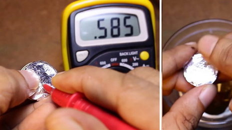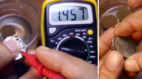 5. जब आप सभी तरह के कॉइन्स को एक-साथ जोड़ लेंगे तब एक बार दोबारा वोल्ड मीटर से करंट चेक करें। इस बार 1.450 के करीब करंट दिखाई देगा। अब इस पूरे सेट को टेप के जरिए अच्छे से कवर कर दें।