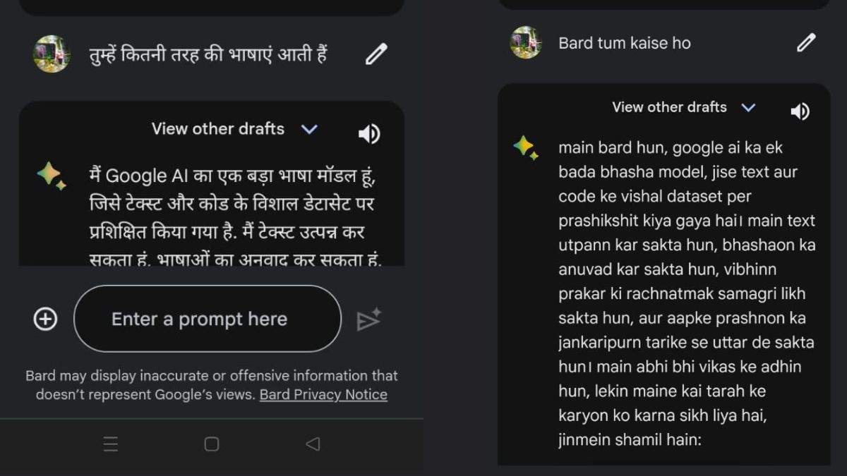 - ठीक इसी तरह बार्ड से बातचीत के लिए अगर आप मैसेज टाइपिंग लैंग्वेज ( Bard Tum Kaise Ho) में बात करते हैं, तो जवाब भी ठीक इसी तरह मिलता है।