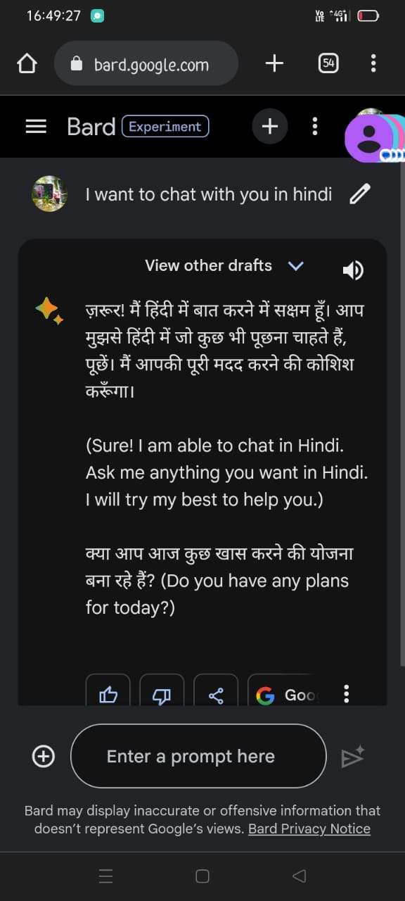 - आप अपने कीबोर्ड की सेटिंग पर हिंदी टाइपिंग शुरू करते हैं तो बार्ड आपको हिंदी में ही जवाब देना शुरू करेगा।