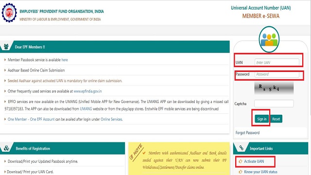 - इसके लिए आपका UAN (यूनिवर्सल अकाउंट नंबर) EPFO (कर्मचारी भविष्य निधि संस्था) के आधिकारिक वेबसाइट पर एक्टिवेट करना जरूरी है। अपने UAN को एक्टिवेट करने के लिए इस लिंक पर क्लिक करें।