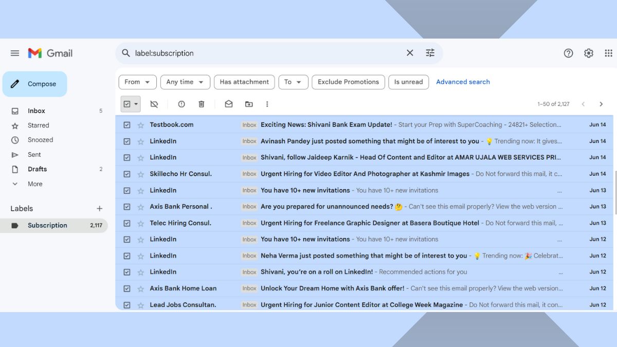 क्या आपको भी लगता है कि इन्बॉक्स में बहुत सारे ऐसे मेल्स पड़े हैं जो किसी काम के नहीं हैं। इन मेल्स की वजह से काम के मेल्स खोजने में परेशानी आती है तो इन्हें एक ही बार में डिलीट कर सकते हैं।