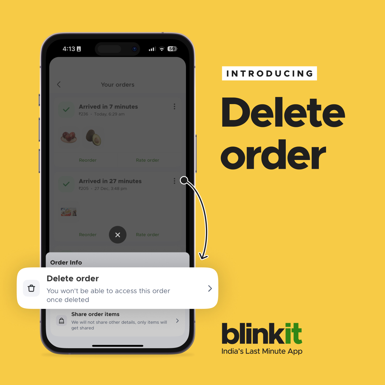 Blinkit से ऑर्डर ऐसे करें डिलीट: