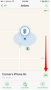 5. नीचे Actions पर टैप करें और फिर कार के ऑप्शन पर क्लिक करें। ऐसा करने से आप मैप एप पर चले जाएंगे और आप अपने आईफोन के पास पहुंच सकते हैं।