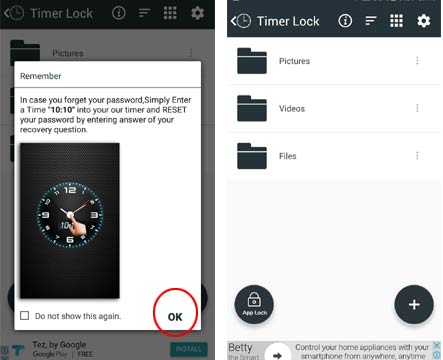 3- इसके बाद जो विंडो ओपन होगी इसमें दिए गए OK पर टैप करें। इस विंडो में आपको बताया जाएगा कि अगर आप टाइम भूल जाते हैं तो आपको 10:10 का टाइम डालना होगा। ऐसा करने से जो सवाल आपने बनाया था आपको उसका जवाब देना होगा। इससे आप पासवर्ड सेट कर पाएंगे।