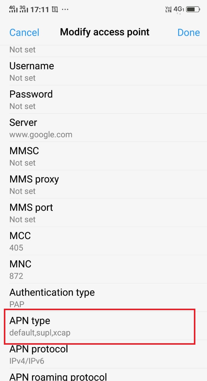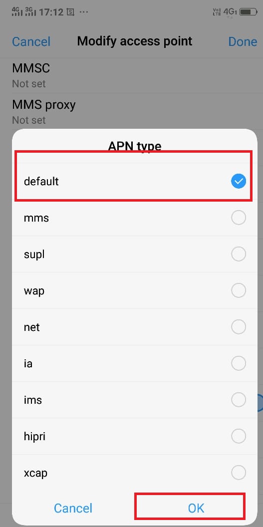 स्टेप-9: नीचे आने पर आपको एपीएन टाइप का विकल्प दिखेगा, इसमें जाकर डिफॉल्ट लिख दें।