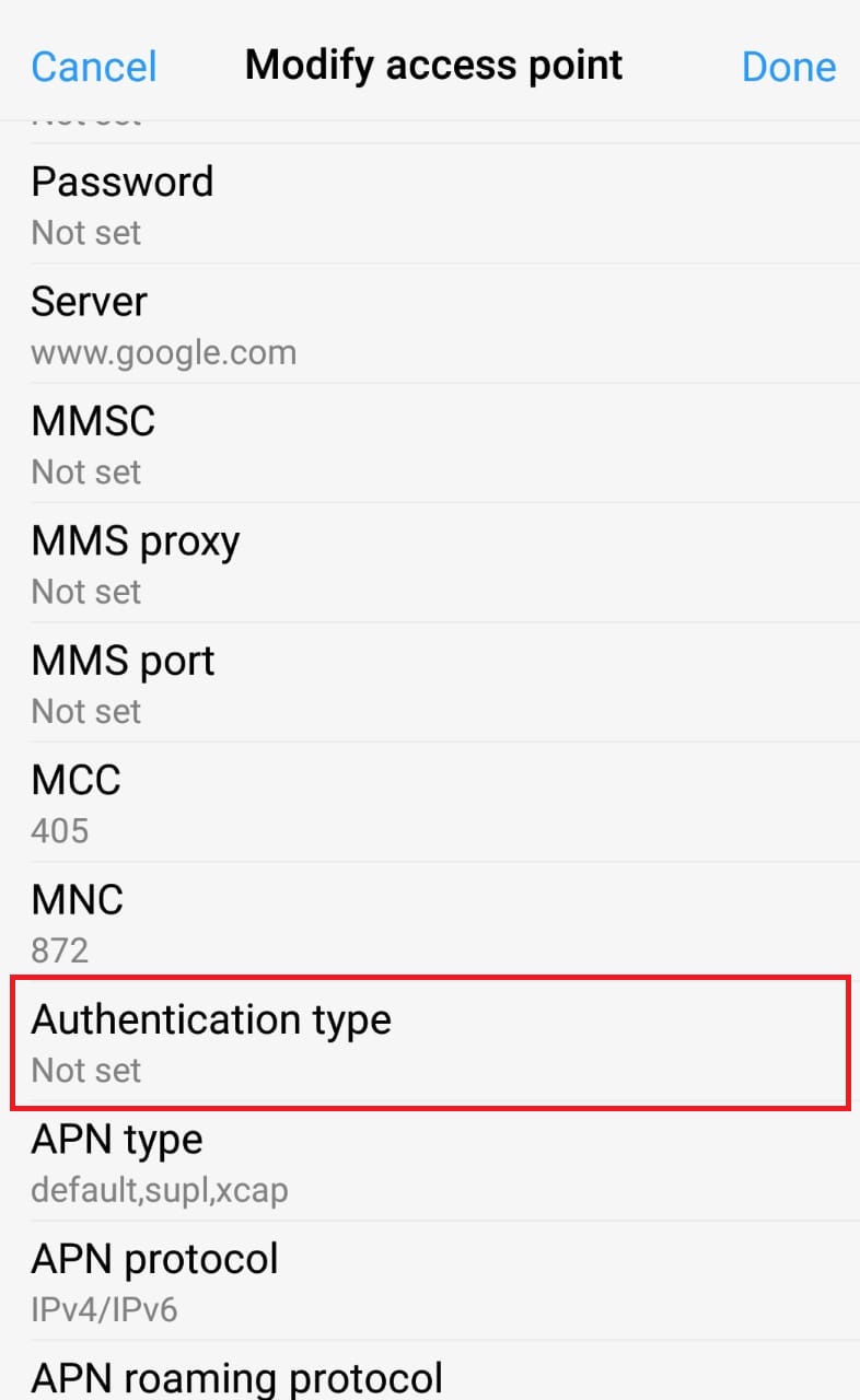 स्टेप-7: अब नीचे स्क्रॉल कर ऑथेंटिकेशन टाइप पर टैप करें।