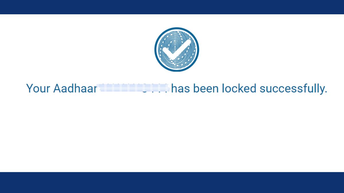- जैसे ही एंटर दबाते हैं स्क्रीन पर आधार कार्ड बायोमेट्रिक लॉक होने की जानकारी डिस्प्ले हो जाती है।