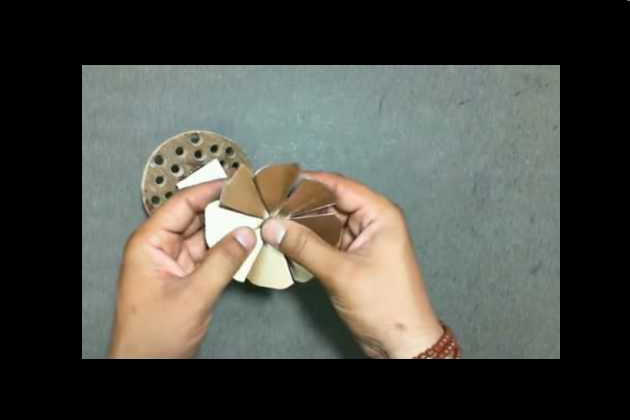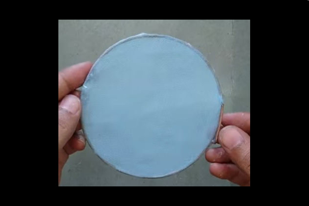 6- अब कॉपर वायर को मोड़ कर गोल कर लें और उसपर कॉटन का कपड़ा चिपका दें। इसके बाद जो डबल टेप आपने बोतल में चिपकाया होगा उसके जरिए इस कॉटन और वायर को बोतल के अंदर चिपका दें।