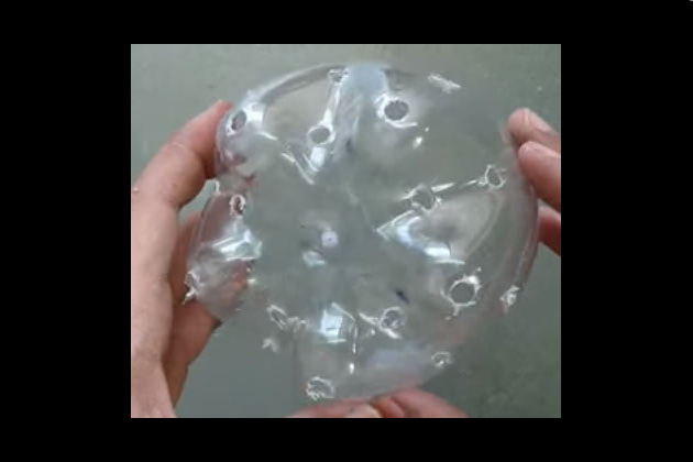 3- इसके बाद बोतल का पिछला हिस्सा लें और इसमें तस्वीर में दिखाए गए जैसे छेद बनाएं।